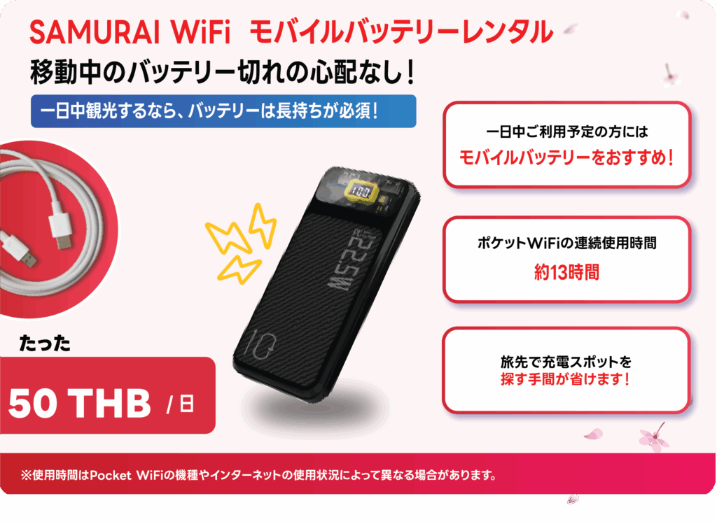หากอยู่ในเขตกรุงเทพฯ ชั้นใน สามารถจัดส่งถึงบ้านหรือที่ทำงานได้! นอกจากนี้ยังสามารถรับอุปกรณ์ได้ที่สนามบิน และจุดให้บริการต่างๆ ของ SAMURAI WiFi