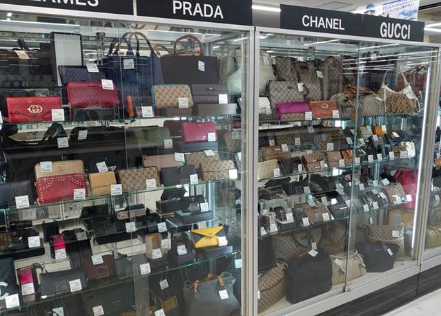 โซนตู้กระจกคือจุดหมายของสาวๆ ที่นี่มีกระเป๋า Louis Vuitton, Chanel, Gucci, Prada วางจำหน่ายในราคาที่จับต้องได้ ข้อดีคือของแท้แน่นอนเพราะมีการตรวจสอบอย่างเข้มงวด