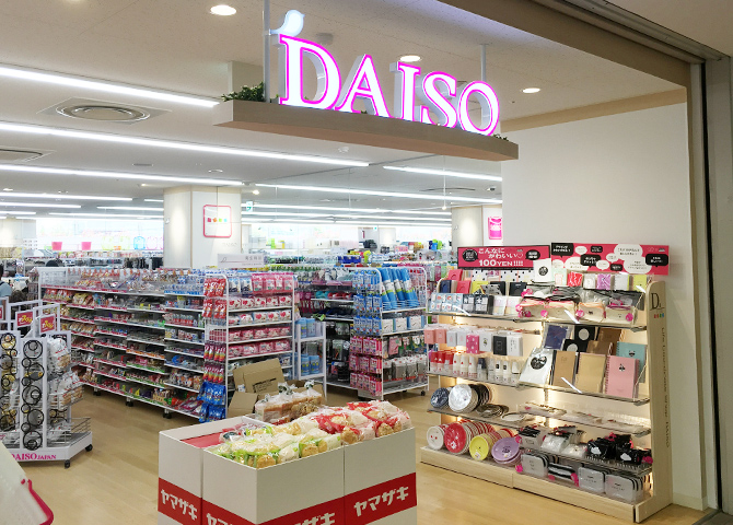Daiso (ไดโซ) คือแบรนด์ที่คนไทยคุ้นเคยมากที่สุดและมีสาขามากที่สุดทั่วญี่ปุ่น จุดเด่นของ Daiso คือความหลากหลายของสินค้าที่มีให้เลือกนับหมื่นรายการ ร้านขนาดใหญ่มักจะมีหลายชั้น เดินเพลินได้เป็นชั่วโมง
