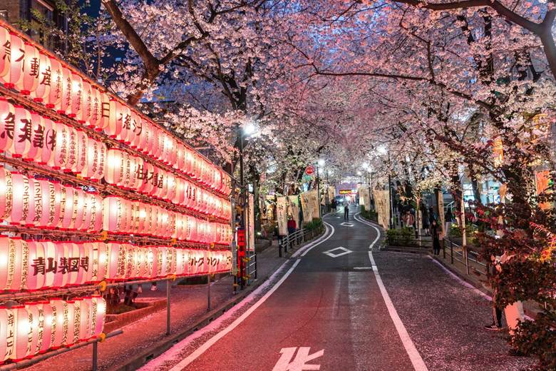 ในช่วงฤดูใบไม้ผลิ ถนนสายเล็กๆ หลังสถานีจะเต็มไปด้วยซากุระและอุโมงค์ไฟ